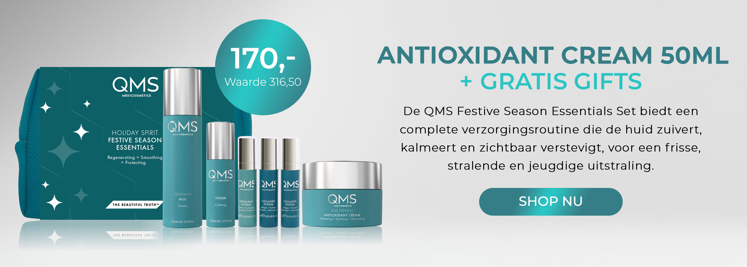 Uw QMS webshop met alle QMS medicosmetics producten online! !QSkin Shop (onderdeel van Dehcos) verkoopt QMS producten onder professionele begeleiding van gecertificeerde schoonheidsspecialistes. Het QMS Anti-Aging gezichtsbehandelingssysteem voor huidgeneratie is tot op heden uniek in zijn werking. Elk QMS Medicosmetics product garandeert kwaliteit van het hoogste niveau, betrouwbaarheid in het gebruik en superieure resultaten. U kunt QMS en overige merken ook bestellen op onze andere webshop: shop.dehcos.nl/qms.